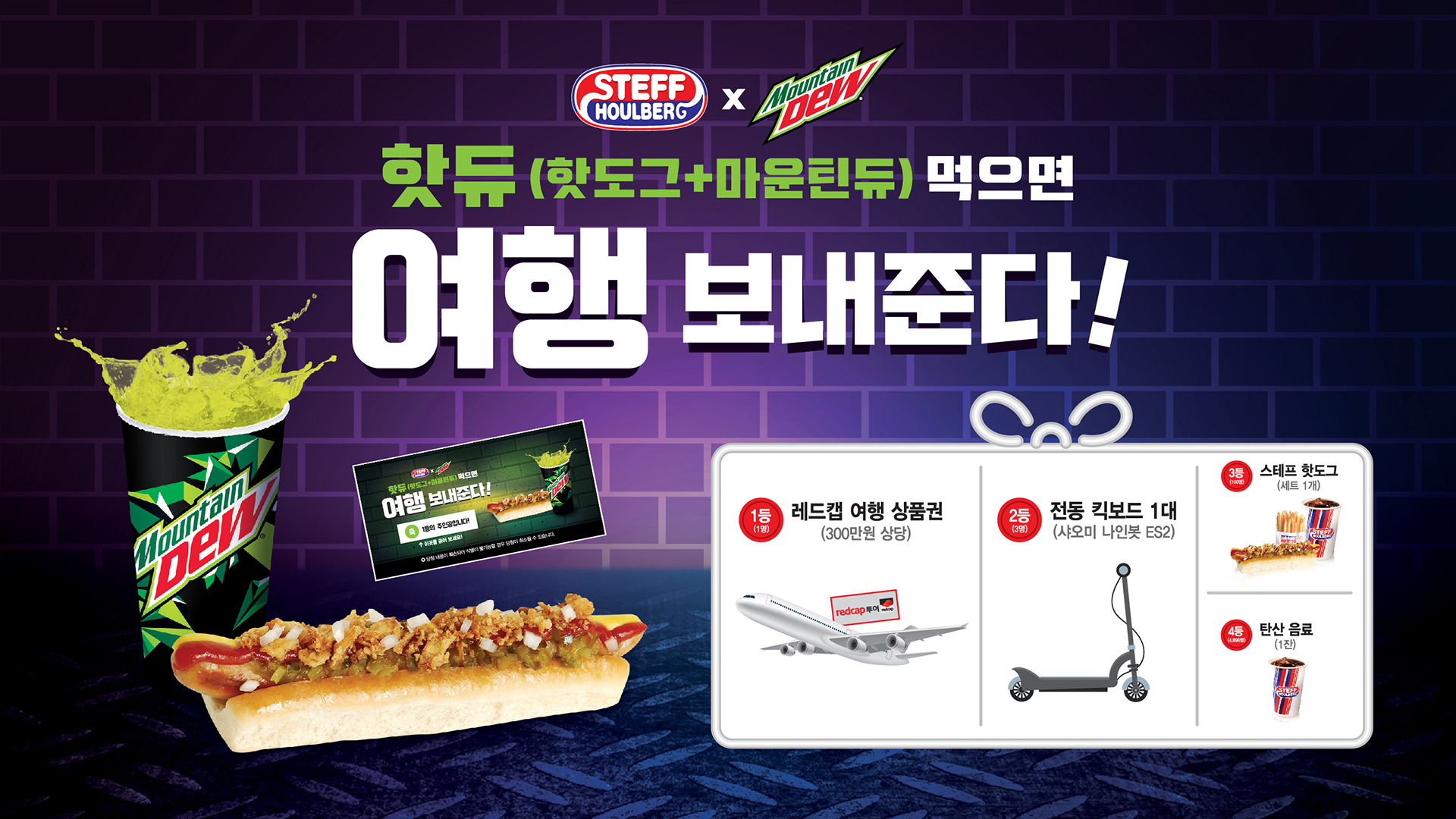 *이벤트 : 핫듀(핫도그+마운틴듀) 먹으면 여행 보내준다!"